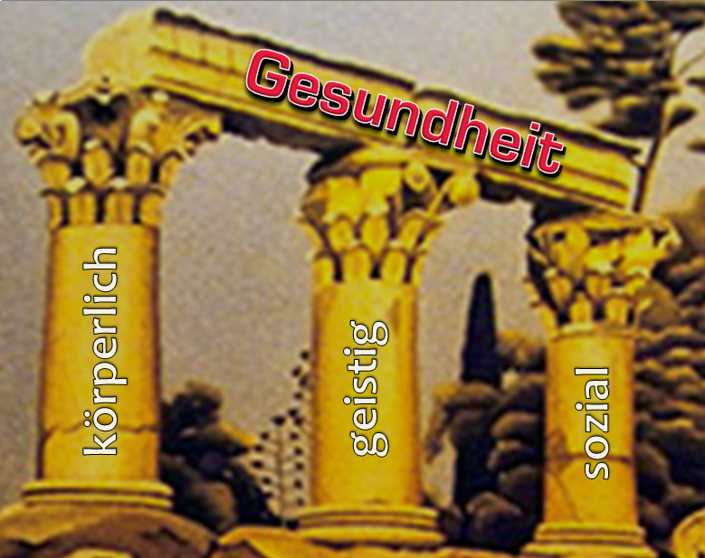 Zusammengefasst heisst dies wohl, dass unsere Gesundheit das wesentlichste und grundsätzlichste in unserem Leben ist. Nur mit einer intakten Gesundheit können wir die restlichen wichtigen Punkte in unserem Leben überhaupt geniessen! Unsere Gesundheit braucht also drei tragfähige Säulen. Ist eine etwas geschwächt/angeknackst mag das noch gehen, kann dies ev. ausgeglichen werden. Ist es aber mehr als eine Säule wird es schwierig!